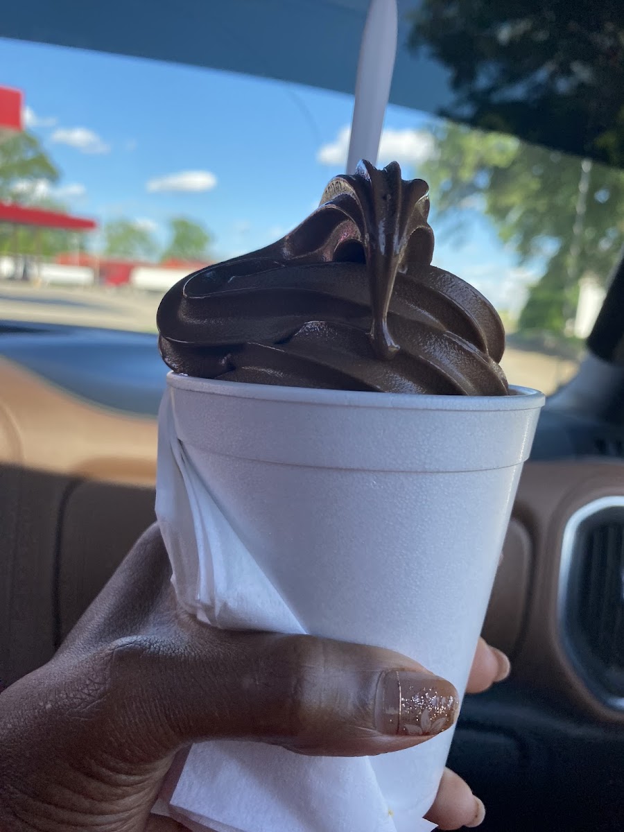 We went because of the yogurt style ice cream. Very good to everyone with me. Not great for me, but I like regular vanilla milk shakes. Order at the window, and take it with you. There was a shaded area to sit, but weren't eating. People were very nice also